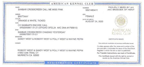 "Pink" GCH Sanbars Crosscreek Just Call Me Miss Pink