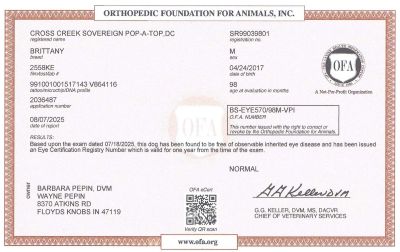 Jackson - CH Cross Creek Sovereign Pop-A-Top is a Champion now! Finished with four major wins.