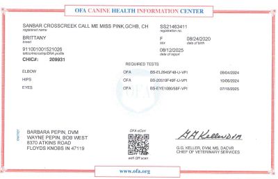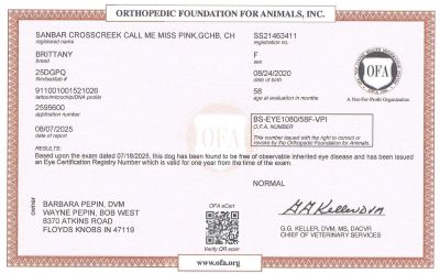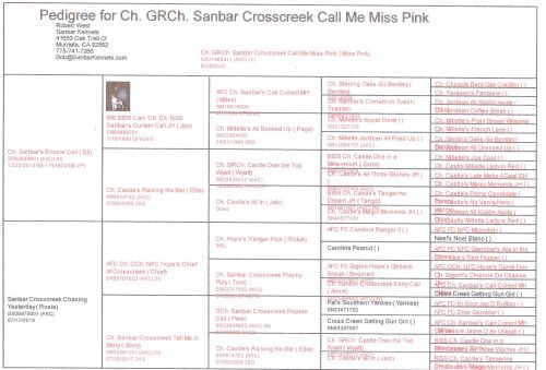"Pink" GCH Sanbars Crosscreek Just Call Me Miss Pink